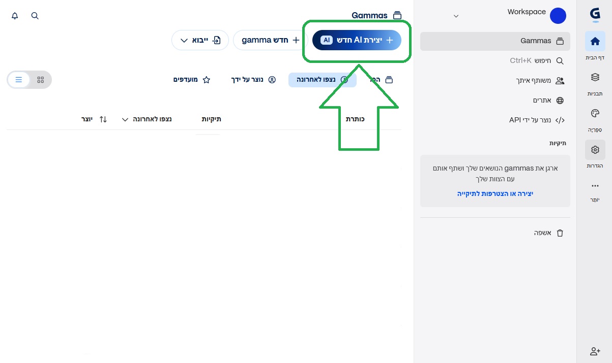 לאחר ההרשמה תגיעו למסך הזה, כאן כל מה שאתם צריכים לעשות זה ללחוץ על +יצירת AI חדש: