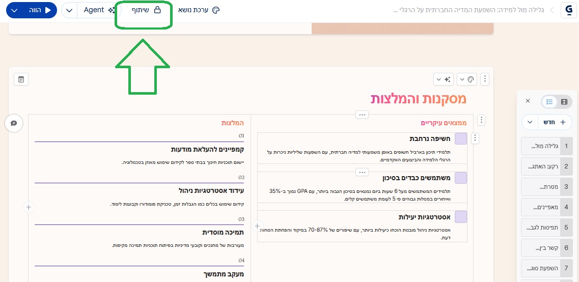 לא מאמינים? הנה המצגת שאני יצרתי במהלך הכנת המדריך הזה. מכיוון שהמאמר שבחרתי עוסק בתופעת הסקרולינג בקרב תלמידים, זה נושא המצגת.